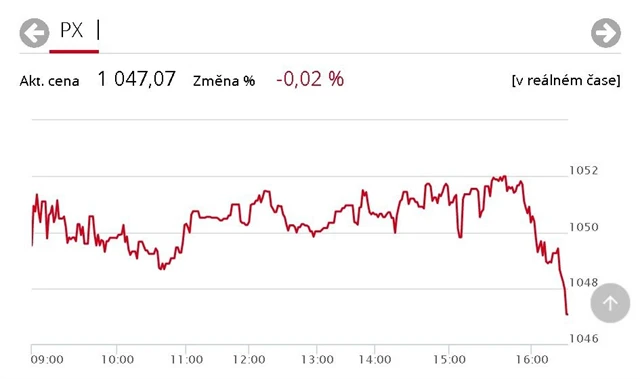 Index pražské burzy PX během čtvrtečního obchodování odepsal 0,02 % a zakončil seanci na 1 047,07 bodu, když ještě hodinu před koncem obchodování atakoval hranici 1 052 bodů. Za sestupem stály tři z velkých emisí, které skončily v červených číslech, a to Komerční banka a oba rakouské finanční tituly, Erste Group Bank a Vienna Insurance Group. Naopak nejvíce podražily akcie státní energetické firmy ČEZ a softwarového výrobce Avast. Zobchodovaný objem dosáhl 421 milionů korun.