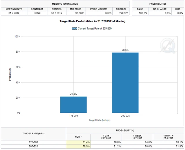 - Především obavy z budoucího zpomalování růstu globální ekonomiky a možných dalších dopadů obchodních válek by měly stát za tím, že americká centrální banka rozhodne ve středu o preventivním snížení úrokových sazeb. A to v kontextu stále robustního trhu práce a úspěchu prezidenta Donalda Trumpa na domácím legislativním poli, kdy by se mu tento týden mělo podařit dokončit schválení dluhového stropu až do roku 2021, což by mu mělo umožnit prosadit výdajové priority.