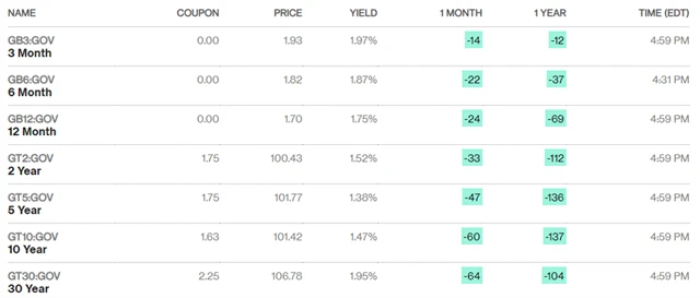 Výnosy vládních dluhopisů USA, zdroj: Bloomberg