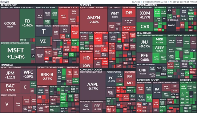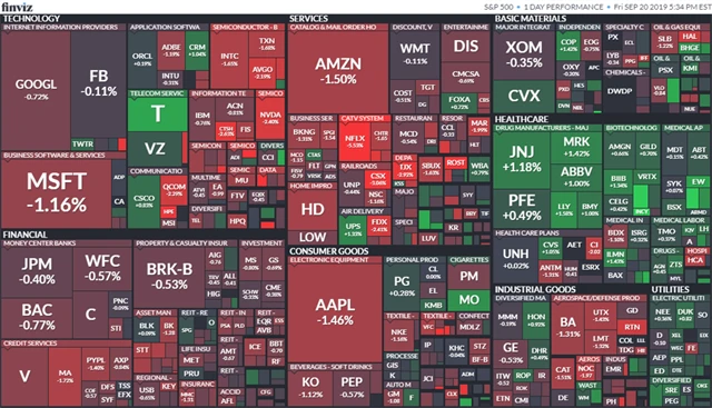 Index Dow v pátek klesl o 0,59 % na 26 935,07 bodu, širší index S&P 500 se snížil o 0,49 % na 2 992,06 bodu a index technologického trhu Nasdaq Composite odepsal 0,8 % na 8 117,67 bodu. Index volatility VIX vyskočil o 9,04 % na 15,32 bodu a výnos 10letých vládních dluhopisů USA se snížil o šest bazických bodů na 1,72 %.