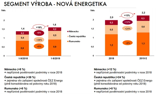 Výroba v segmentu nové energetiky dosáhla od ledna do září 1,6 TWh, a meziročně se tak zvýšila o 16 %. Za celý rok by se výroba v segmentu nové energetiky měla zvýšit o 13 % na 2,2 TWh, přispět by k růstu měly všechny regiony (ČR +24 %, Německo +12 %, Rumunsko +8 %).