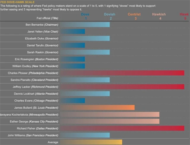 Jak je vidět z grafu Thomson Reuters, Bullard je vnímán jako neutrální, po čtvrtečním projevu je ovšem jeho neutralita zpochybněna. Mimo jiné řekl, že poznámky z posledního zasedání FOMC nejsou relevantní, protože na trh mezitím dorazila čerstvá data. Ta byla optimističtější, ale mají zároveň daleko k tomu, aby indikovala podstatný a trvalý obrat (což je podle Fedu podmínka toho, aby bylo možno vyloučit QE3).