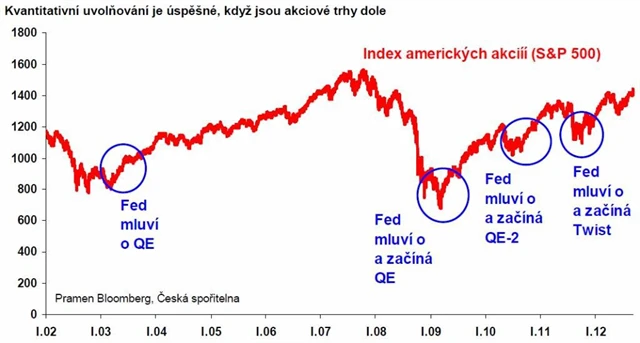 Jako dítě jsem vždy čekal, kdy ten kouzelník už konečně přijde. A ono nikdy nic. QE3 se na rozdíl od kouzelníka možná dočkáme. Co od něj čekat? Kvantitativní uvolňování má oficiálně za cíl stimulovat ekonomickou aktivitu a očekávání růstu cen aktiv i spotřebitelských cen, takzvanou reflaci, snížením dlouhých úrokových sazeb (úrokových sazeb u papírů s dlouhou splatností) a vytlačením investorů z bezpečného přístavu státních dluhopisů do rizikovějších aktiv.