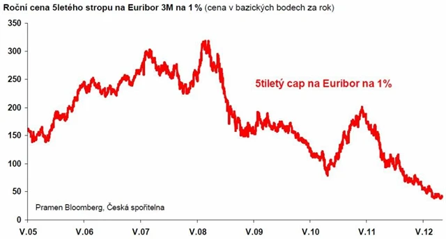Nedoporučujeme spekulovat na obrat v trendu úrokových sazeb, ale zajistit se, dokud je to velmi levné. A to jak jednoduchými úrokovými swapy, tak i nákupy úrokových stropů, tzv. capů.
