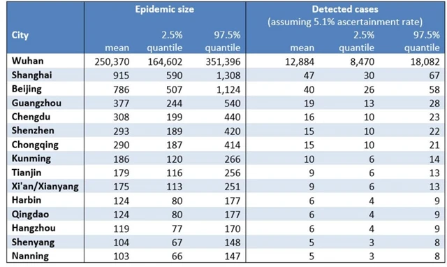 To by znamenalo, že by do 4. února mohlo být koronavirem nakaženo jen ve Wu-chanu až 250 tisíc lidí (s odchylkami odhadu od 164 po 351 tisíc).