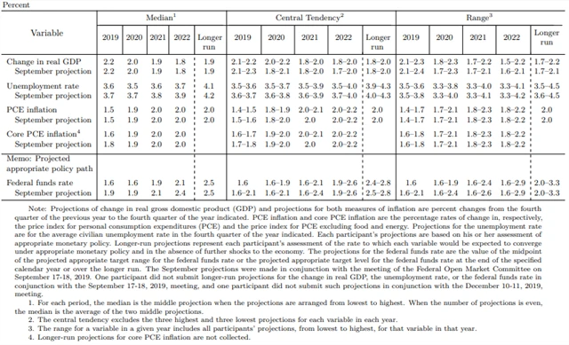 Inflace by podle prosincové prognózy měla v letošním roce činit 1,9 % a v letech 2021 a 2022 by měla dosáhnout 2 %. Míra nezaměstnanosti letos podle Fedu bude 3,5 %, v dalších dvou letech by se měla zvýšit na 3,6 %, respektive na 3,7 %.