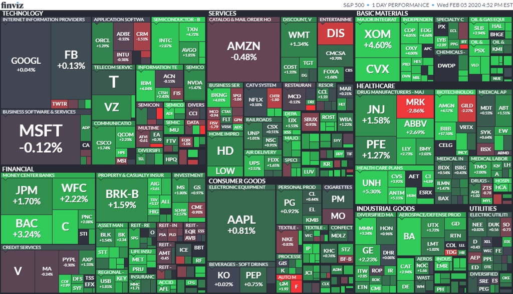 Americké akcie ve středu stouply. Přispěl k tomu pokles obav z ekonomického dopadu šíření nového koronaviru a příznivá statistika z hospodářství USA. Index S&P 500 obchodování ukončil na novém rekordu. Prudký pokles cen akcií výrobce elektromobilů Tesla táhl dolů technologický sektor.