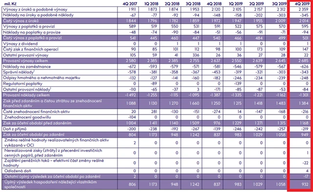 V 4. čtvrtletí banka vydělala 932 milionů Kč