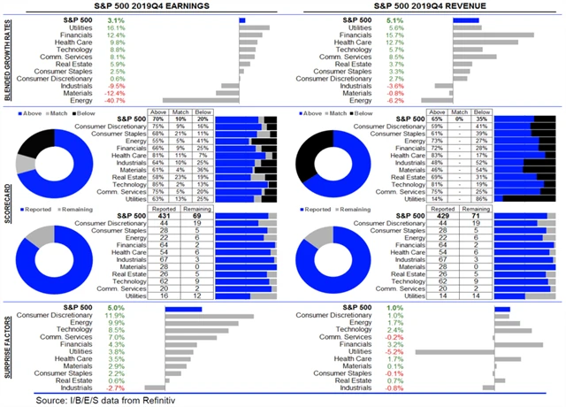 Statistika dosud oznámených výsledků amerických firem za 4Q2019