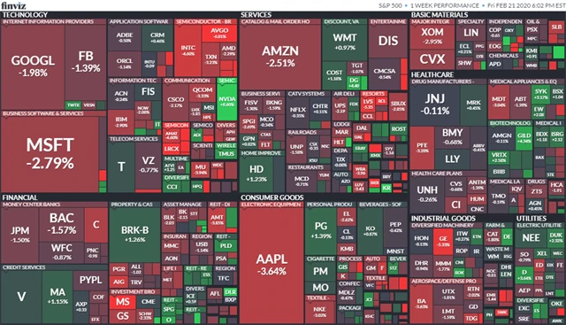 Komponenty indexu S&P 500 v týdnu do 21. února 2020