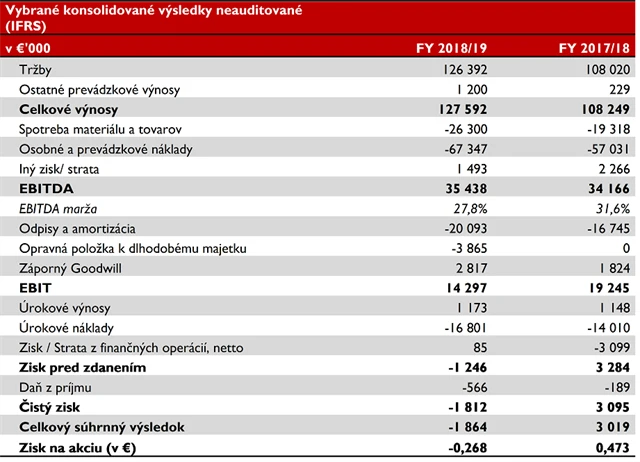 Provozní zisk EBITDA skupině meziročně stoupl o 3,7 % na 35,4 milionu eur. Její výnosy se zvýšily o více než šestinu na 127,6 milionu eur.