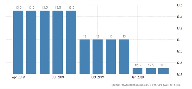 Čínská centrální banka se podruhé v letošním roce rozhodla snížit minimální objem hotovosti, kterou musejí komerční banky držet jako rezervu. Opatření, které se týká bank splňujících určité finanční cíle, uvolní 550 miliard jüanů (1,85 bilionu Kč) na nové půjčky. Cílem je podpořit ekonomiku, která se potýká s negativními dopady nového typu koronaviru.
