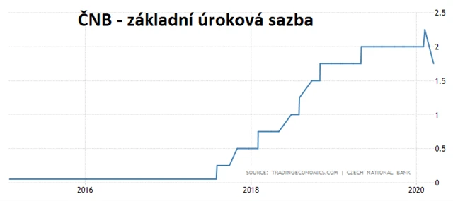 Bankovní rada České národní banky v pondělí na mimořádném jednání snížila jednomyslně základní úrokovou sazbu o 0,5 procentního bodu na 1,75 %. Cílem je zmírnění dopadů situace způsobené epidemií nemoci COVID-19 na české firmy, podnikatele a domácnosti.