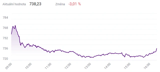 Obchodování na pražské burze začalo v úterý v zelených číslech, index PX se kolem 9.15 dostal až nad 774 bodů poté, co pondělní obchodování zakončil na 761,12 bodu. Rychle ale o zisky přišel a svezl se pod 740 bodů. Den nakonec uzavřel se ztrátou 3,01 % na 738,23 bodu. Výrazně zlevnily akcie CME nebo Erste Group Bank, v plusu naopak obchodování zakončily akcie energetické skupiny ČEZ, která ráno zveřejnila solidní hospodářská čísla.