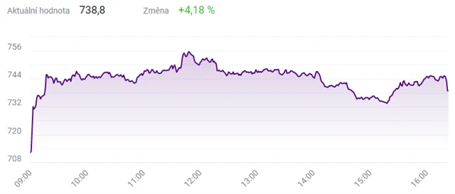 Odpoledne index PX část zisků odevzdal, stále byl ale výrazně v plusu, ve 14.40 rostl o 4,25 % na 739,32 bodu. Výrazně nad nulou byly odpoledne stále akcie Avastu (+7,61 %), ČEZ (+4,03 %) nebo Erste (+4,06 %).