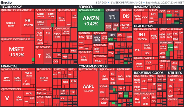 Komponenty indexu S&P 500 v týdnu do 20. března 2020