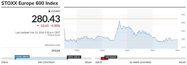 STOXX Europe 600 - 23. března 2020, zdroj: MarketWatch