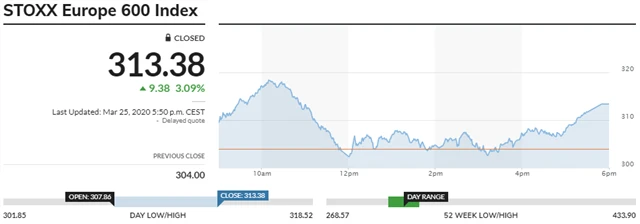 STOXX Europe 600 - 25. března 2020, zdroj: MarketWatch
