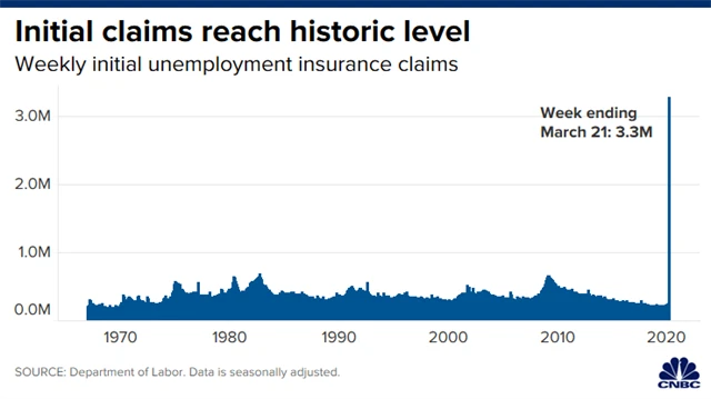Americké ministerstvo práce oznámilo, že počet žádostí o podporu v nezaměstnanosti minulý týden vystoupil na téměř 3,3 milionu. Je to rekord, který navíc zhruba čtyřnásobně přesáhl dosavadní maximum staré téměř 40 let. Analytici v anketě agentury Reuters čekali podle nejvyššího odhadu ovšem až čtyři miliony nových žadatelů.