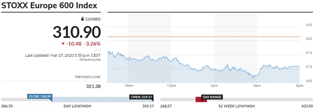 STOXX Europe 600 - 27. března 2020, zdroj: MarketWatch