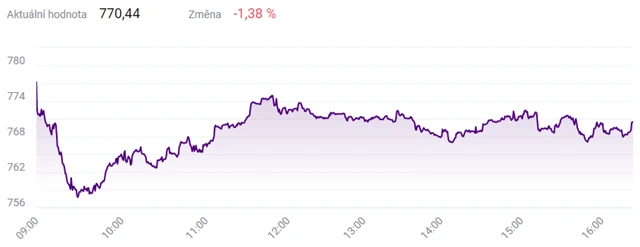Pražská burza v pondělí opět oslabovala. Index PX klesl o 1,38 % na 770,44 bodu. Dolů trh táhly především akcie energetické skupiny ČEZ a bank. Burza začátkem minulého týdne po předchozím propadu kvůli šíření koronaviru výrazně posílila až na skoro 808 bodů, ale od čtvrtka zase vytrvale oslabuje.