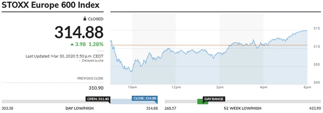 STOXX Europe 600 - 30. března 2020, zdroj: MarketWatch