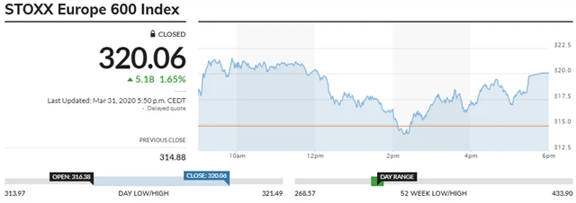 STOXX Europe 600 - 31. března 2020, zdroj: MarketWatch