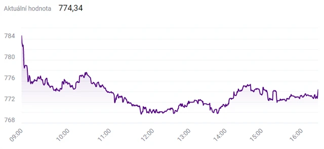 Zlevnily také cenné papíry pojišťovny VIG, a to o 1,25 % na 473 korun, z menších emisí vykázala výraznější ztrátu mediální firma CME (-3,89 % na 71,60 Kč).