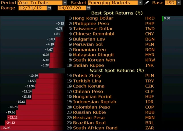 Největší ztráty vůči dolaru zaznamenal jihoafrický rand (25 %), brazilský real (24 %) nebo ruský rubl (19 %). Středoevropské měny se oslabení vůči dolaru také nevyhnuly a ztrácejí od začátku roku v průměru 12 %.