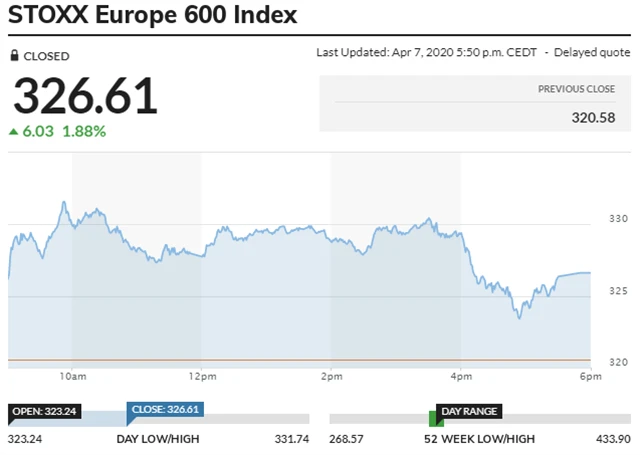 STOXX Europe 600 - 7. dubna 2020, zdroj: MarketWatch