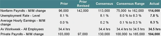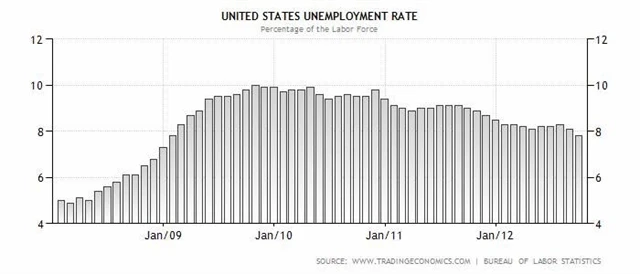 Celková míra nezaměstnanosti v USA klesla v září překvapivě na 7,8 % ze srpnových 8,1 % a je nejnižší od ledna 2009. Trh čekal spíše růst na 8,2 %. Včetně revize za srpen byly pozitivní i počty nově vytvořených pracovních míst mimo zemědělství. Americké futures reagovaly na zprávu růstem.