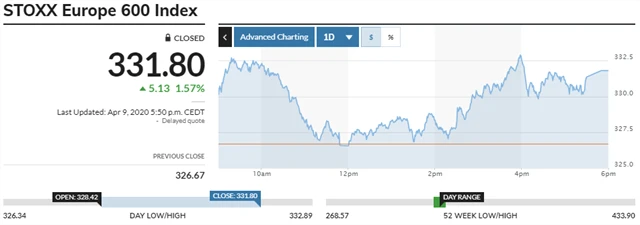 STOXX Europe 600 - 9. dubna 2020, zdroj: MarketWatch