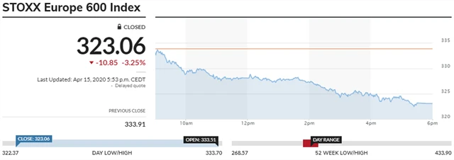 STOXX Europe 600 - 15. dubna 2020, zdroj: MarketWatch