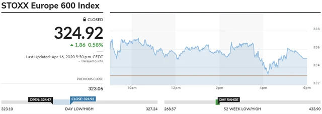 STOXX Europe 600 - 16. dubna 2020, zdroj: BCPP