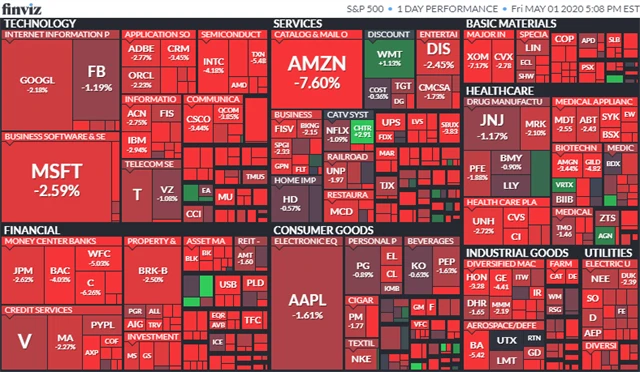 Pokles zaznamenalo všech 11 sektorů, které jsou součástí indexu S&P 500. Nejvíce ztrácely energetické společnosti po výsledcích hospodaření firem ExxonMobil (-7,17 %) a Chevron (-2,78 %).