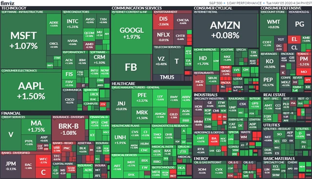 Posílilo všech 11 dílčích sektorů indexu S&P 500. Nejlépe si vedly zdravotnické společnosti jako Pfizer (+2,37 %) či Regeneron Pharmaceuticals (+6,01 %). Reagovaly tak na pozitivní zprávy související s koronavirem.