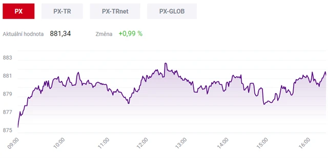 Pražská burza si ve čtvrtek polepšila zhruba o procento po středečním mírném poklesu. Index PX stoupl o 0,99 % na 881,34 bodu. Dařilo se akciím firmy ČEZ, která příští týden v úterý zveřejní výsledky čtvrtletního hospodaření. Naopak dolů zamířily akcie Komerční banky a Monety Money Bank.