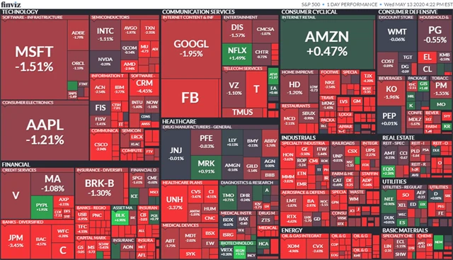Index Dow ztratil 2,17 % na 23 247,97 bodu, širší index S&P 500 klesl o 1,75 % na 2 820 bodů a index technologického trhu Nasdaq Composite se snížil o 1,55 % na 8 863,17 bodu. Index volatility VIX stoupl o 6,78 % na 35,28 bodu a výnos 10letých vládních dluhopisů USA se snížil asi o čtyři bazické body na 0,652 %.