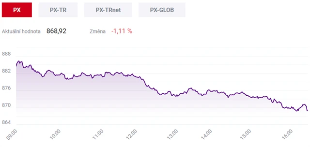 Index PX pondělní zisky neudržel, nedařilo se finančním emisím