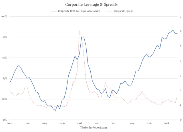 Zadlužení ve firemním sektoru navíc dosahuje rekordních maxim, takže na stole zůstává i možnost dalšího růstu spreadů. A velice výrazného. "Nárůst spreadů ze začátku letošního roku byla jen nepatrná vlnka, vezmeme-li v potaz současnou míru zadlužení firemního sektoru," upozorňuje Felder.