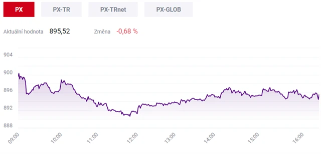 Pražská burza v pátek znovu oslabila, index PX klesl o 0,68 % na 895,52 bodu. Nejvýrazněji ztrácely akcie bankovní skupiny Erste, které zlevnily o zhruba 2,5 %.
