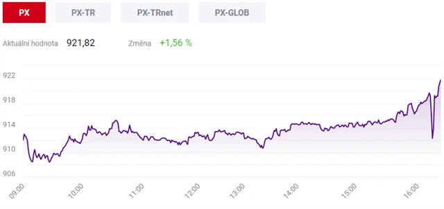 Pražská burza má za sebou další růstovou obchodní seanci, index PX posílil o 1,56 % na 921,82 bodu. Nejvíce se dařilo bankovním titulům, akcie Erste Group zpevnily o více než 5 %.