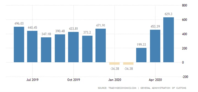 Přebytek obchodu byl nejvyšší od roku 1981, kdy Reuters začala tento údaj sledovat. Analytici naopak čekali pokles přebytku na 39 miliard USD z dubnových 45,34 miliardy USD. Přebytek obchodu se Spojenými státy se zvýšil na 27,89 miliardy USD.