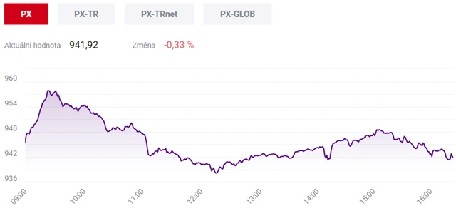 Akcie na pražské burze ve středu opět klesaly, index PX odepsal 0,33 % na 941,92 bodu. Největší ztráty si i přes dobrý start dne opět připsaly bankovní tituly.