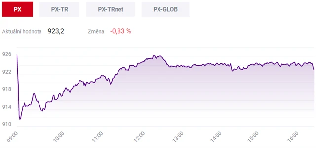 Akcie na pražské burze mají za sebou poměrně volatilní pondělí. Po ranním výrazném sešupu v průběhu dne dokázaly většinu ztrát umazat a index PX nakonec skončil se ztrátou 0,83 % na 923,2 bodu. Hlavní roli opět sehrály bankovní tituly.