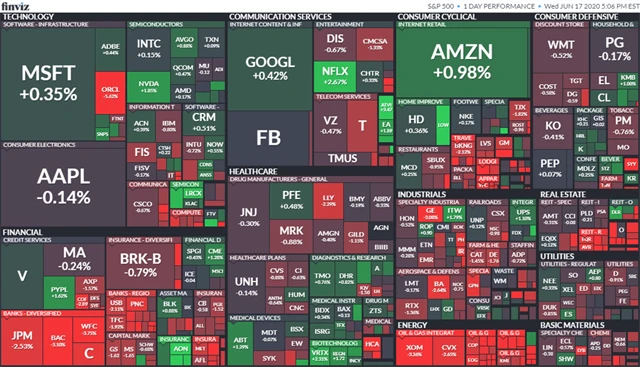 Index Dow klesl o 0,65 % na 26 119,61 bodu a širší index S&P 500 oslabil o 0,36 % na 3 113,49 bodu, zatímco index technologického trhu Nasdaq Composite posílil o 0,15 % na 9 910,53 bodu. Index volatility VIX klesl o 0,59 % na 33,47 bodu a výnos 10letých vládních dluhopisů USA se snížil o zhruba dva bazické body na 0,733 %.