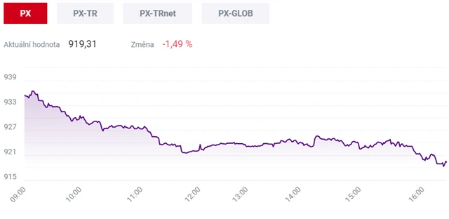 Pražská burza ve středu ztrácela, index PX klesl o 1,49 procenta na 919,31 bodu. V červeném skončil celý finanční sektor, nedařilo se zejména Erste Bank. Poklesu pražského trhu nezabránil ani jednoprocentní růst akcií elektrárenské společnosti ČEZ.