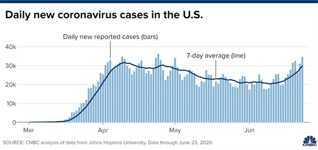 Spojené státy zaznamenaly druhý největší nárůst počtu infekcí onemocněním COVID-19 od počátku pandemie. Americké státy New York, Connecticut a New Jersey nově nařizují dvoutýdenní karanténu lidem, kteří přijedou z těch oblastí USA, které se potýkají s vysokou mírou nákazy koronavirem.