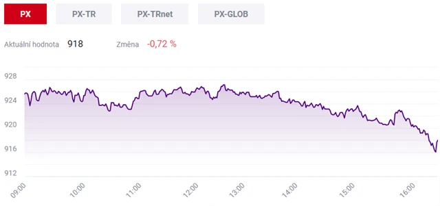 Pražská burza po dvou dnech růstu v úterý oslabila o 0,72 %, od začátku roku ztrácí index PX téměř 18 %