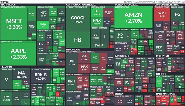 Akcie ve Spojených státech se ve středu pohybovaly oběma směry a v závěru posílily především díky technologickým firmám. Index Nasdaq Composite uzavřel na novém maximu. Investoři zvažovali, zda přisoudit větší váhu známkám ožívání ekonomiky, nebo opětovnému zrychlení šíření nemoci covid-19.